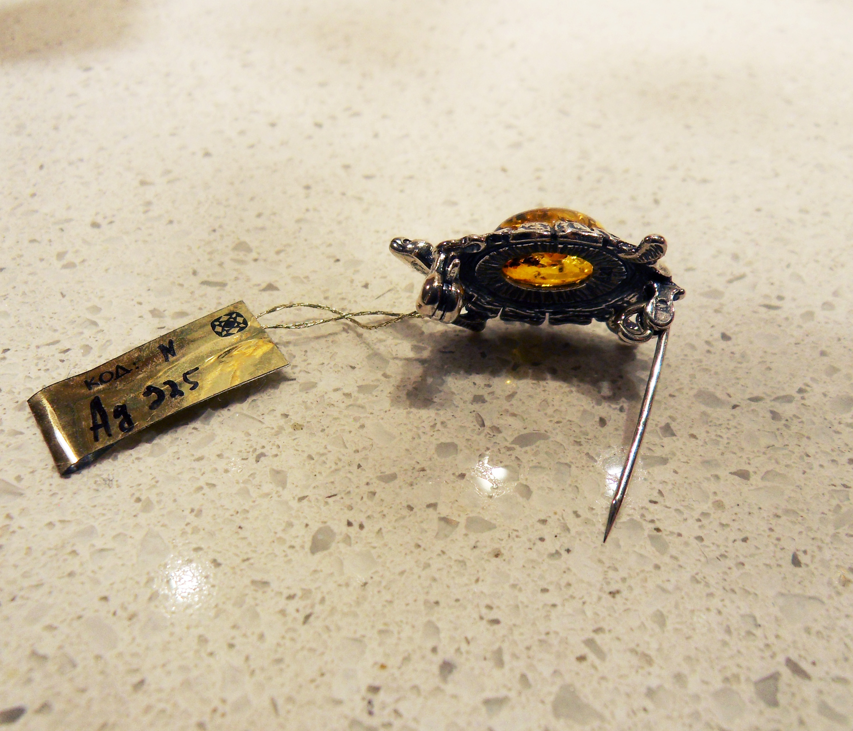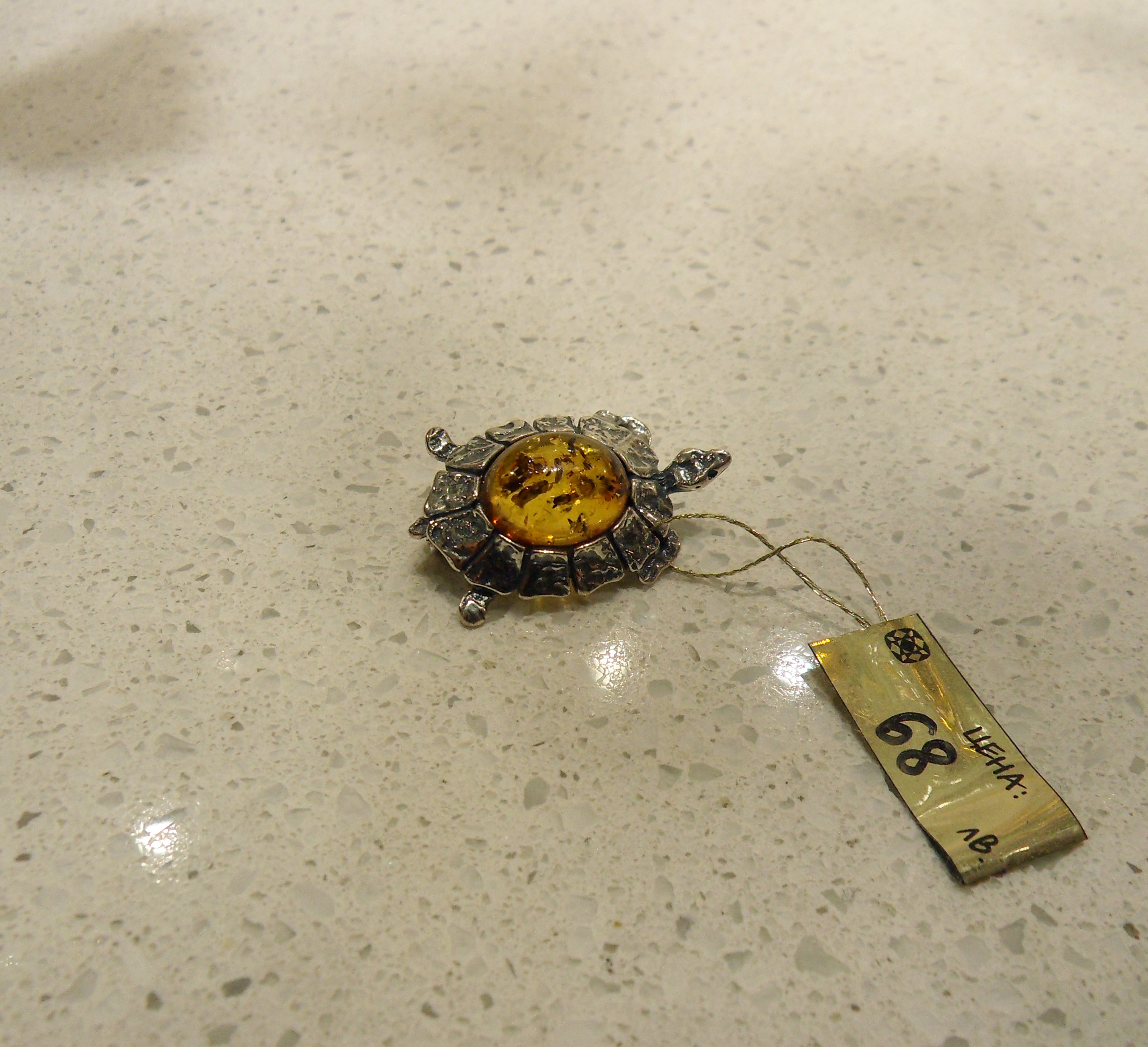Сребърна брошка Костенурка 0.00 лв. (€ 0.00) Добави в количката Оригинлен модел брошка с естесвтен балтийски кехлибар. Изработена от сребро.