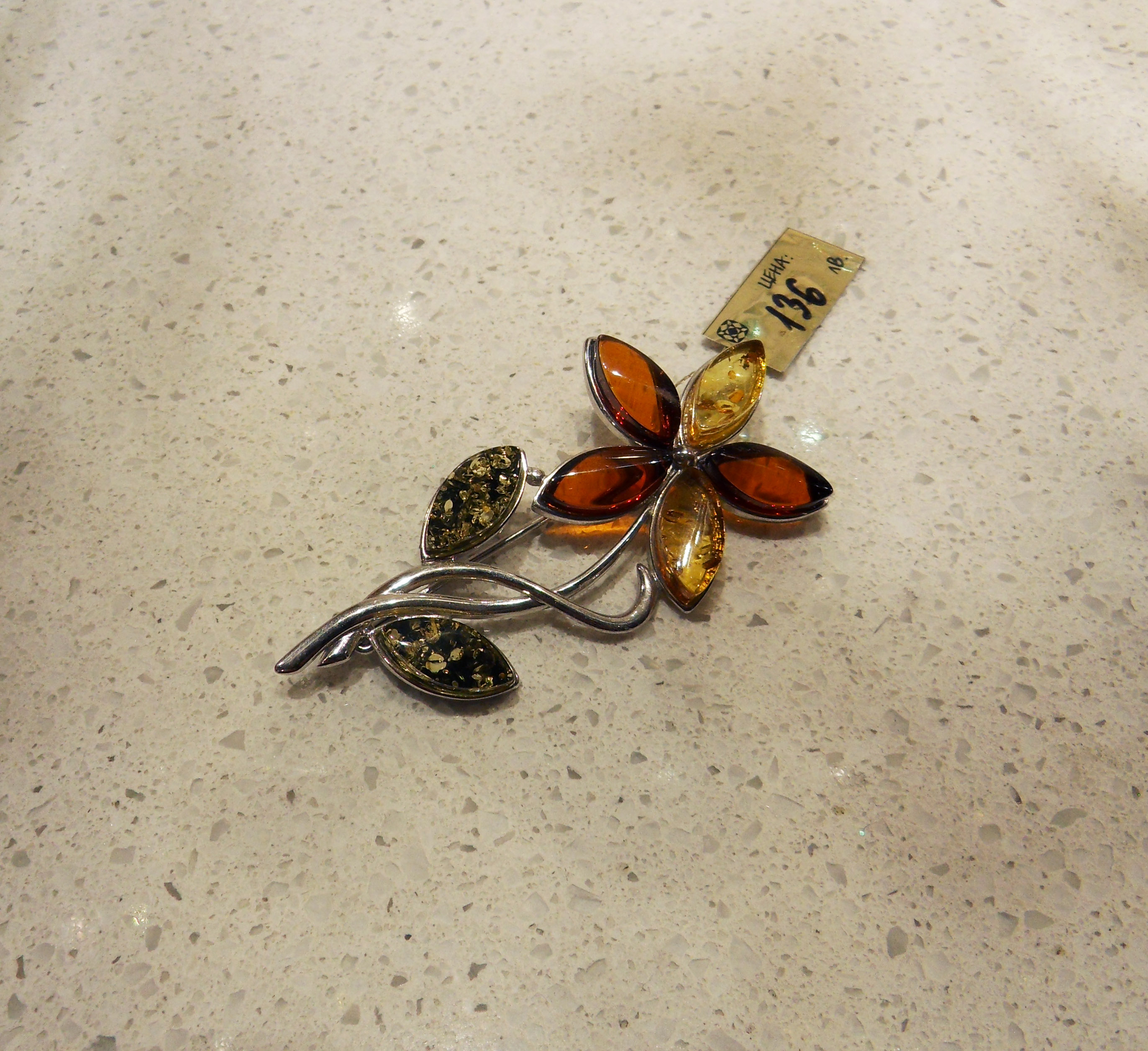 Сребърна брошка Цвете 0.00 лв. (€ 0.00) Добави в количката Нежна брошка изработена от сребро и естествен балтийски кегхлибар в различни нюанси.
